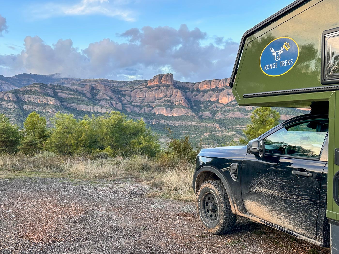 Nach über acht Stunden Offroad-Abenteuer suchen wir uns einen Stellplatz für die Nacht. Zwischen Hortoneda und Claverol finden wir einen wunderschönen Platz mit spektakulärem Blick auf die roten Felsen – ein perfekter Abschluss dieses grandiosen Tages.
