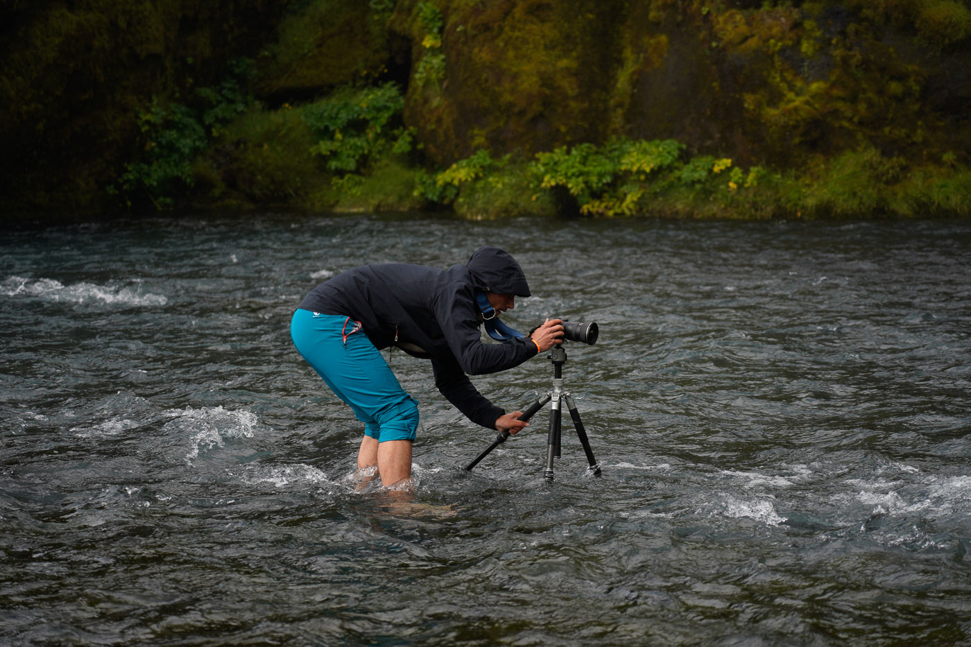 Das Bild ist entstanden, indem Jacob sich mitsamt Stativ und Kamera für mehrere Minuten in den eiskalten Fluss gestellt hatte, um diese Langzeitbelichtung zu ermöglichen.